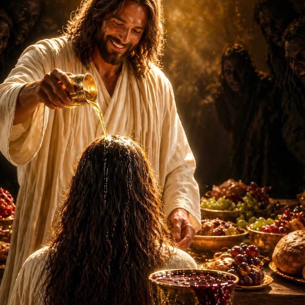 “You prepare a table before me in the presence of my enemies; You anoint my head with oil; My cup runs over.”
